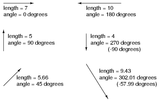 Vectors Unlike a scalar quantity, which is only magnitude, a vector has both magnitude and direction. Like distances and directions on a map, there must be some common frame of reference for angle figures to have any meaning. In this case, directly right is considered to be 0o, and angles are counted in a positive direction going counter-clockwise.